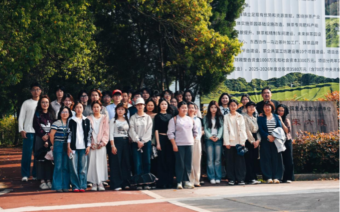为深化日语专业实践教学,推动语言学习与文化传承深度融合,4月10日下午,绍兴大学外国语学院日语系组织241班、251班全体学生,在系主任、各班班主任及任课教师的带领下,赴富盛镇御茶村开展“抹茶研学之旅”特色教学实践活动,在行走的课堂中探寻中日茶文化的渊源与共鸣。