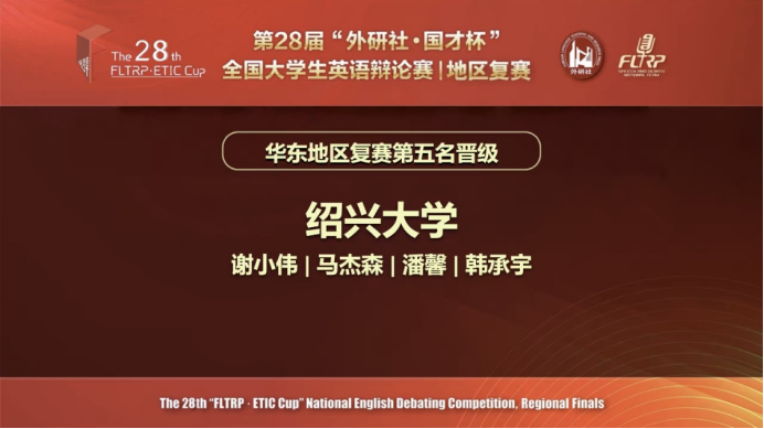 作为国内英语辩论领域的顶级赛事,本次比赛吸引了华东地区百余所高校的126支队伍同台竞技。得益于去年在该赛事中斩获金奖,我院今年首次获得两个参赛名额。学院英语演讲与辩论基地高度重视此次赛事,在谢小伟、王嘉腾、马杰森、俞晓霞四位指导老师的带领下,于本学期初启动校赛选拔。经过多轮对抗,最终选出韩承宇与潘馨、朱展轶与唐颢瑜两组选手代表学校出战。经过五轮循环赛,韩承宇与潘馨组合凭借扎实的英语功底、敏锐的问题洞察能力和默契的团队配合,成功晋级全国决赛。同时,韩承宇凭借在多场比赛中的出色表现,成为本次赛事中最受瞩目的选手之一。韩承宇与潘馨将继续备战全国决赛。